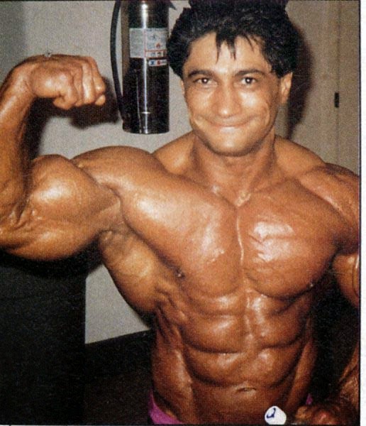 Eddie Robinson, 5'6", 220lbs. Like Padilla and Platz, Robinson began his career as a powerlifter, and was a fucking good one. At one point, Robinson held world records in the bench press as a teenager, hitting 575 and 610 on the bench rocking nothing thicker than a t-shirt. Apparently Robinson hated bodybuilding, but it was the only way for him to get paid to lift, so he set about becoming a staple in Weider mags for ten years... mostly for training like a total psychopath.
